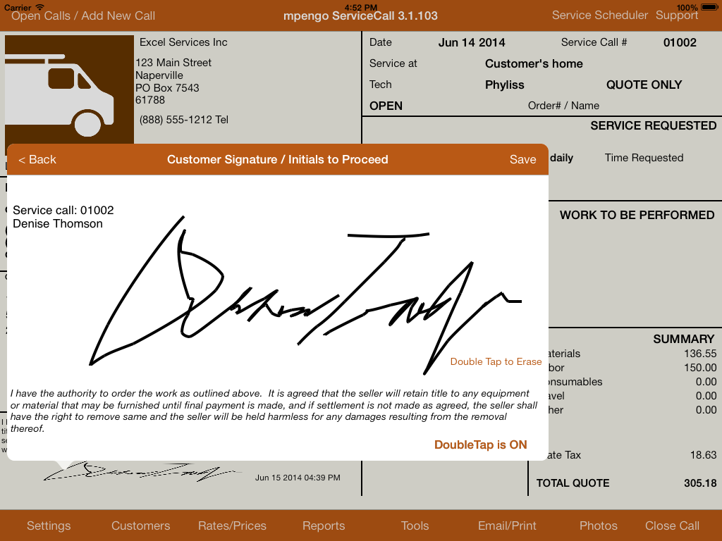 Capture electronic signature to approve quotes before the work starts