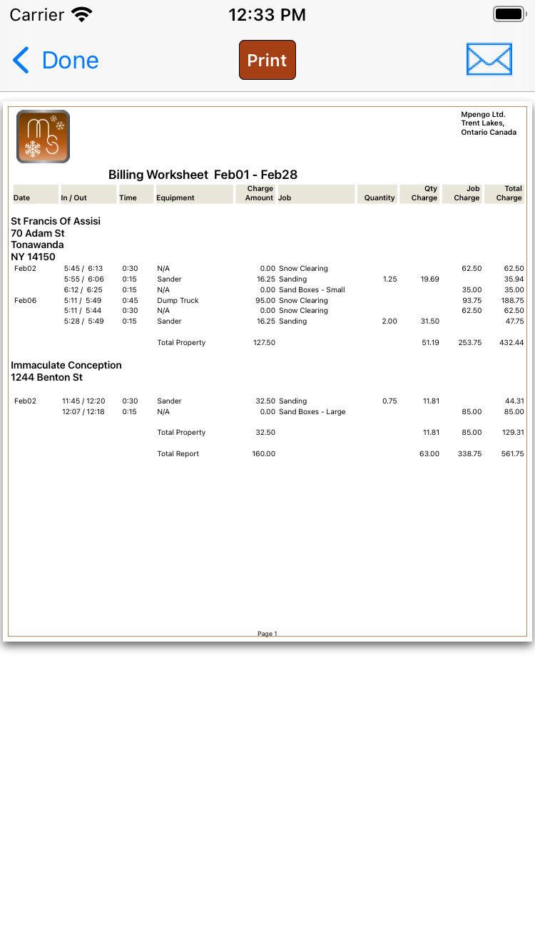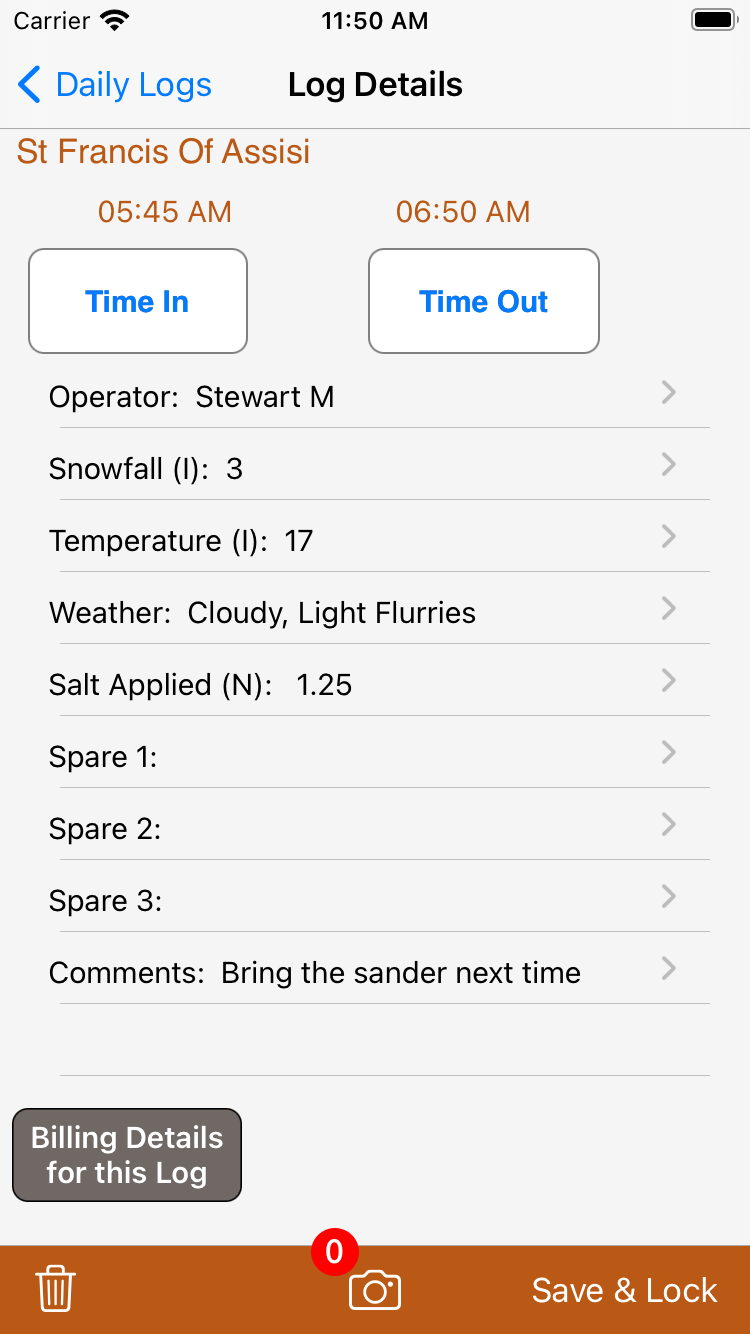 - Record daily snow removal, salting, and property visits, complete with time and date stamped photos